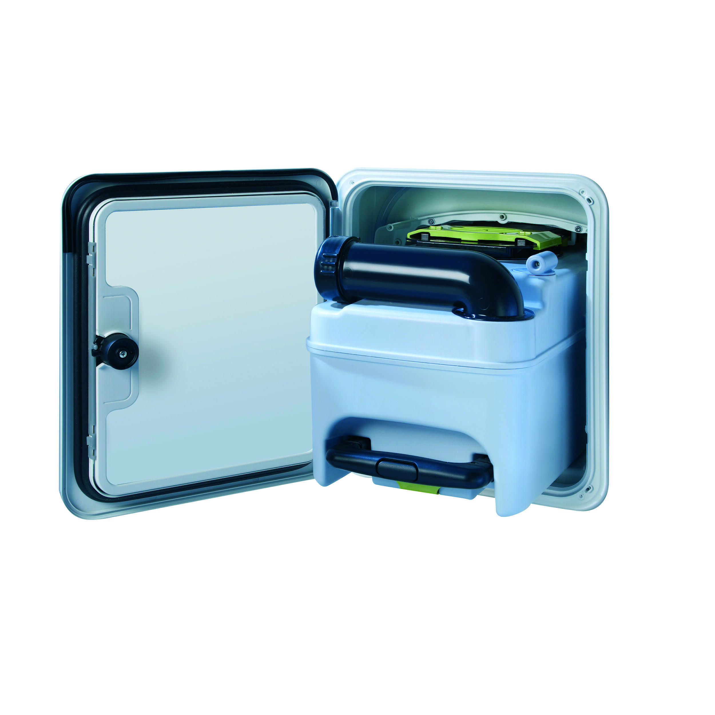 Le modèle CTS 4110 ne possède pas de réservoir d’eau de rinçage intégré. La chasse d'eau s’alimente sur le circuit d’eau propre du véhicule. En revanche, le modèle CTW 4110 dispose d'un réservoir d’eau claire intégré de 7 litres aux toilettes pour la chasse d'eau.